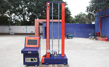 為模擬運輸過程中可能發(fā)生的撞擊,將被測樣品用堅硬支架緊固在試驗裝置上,支架支撐著試驗樣品的所有安裝面。采用半正弦波沖擊,設(shè)置最大加速度150gn,脈沖時間6ms,在安裝方位的三維方向上,正、反方向各沖擊三次,共經(jīng)受18次沖擊。如果是大型電池或大型電池組,則采用最大加速度50gn,脈沖時間11ms的半正弦波沖擊。測試完畢評判依據(jù)同3.1.2。本試驗設(shè)備如圖3所示: