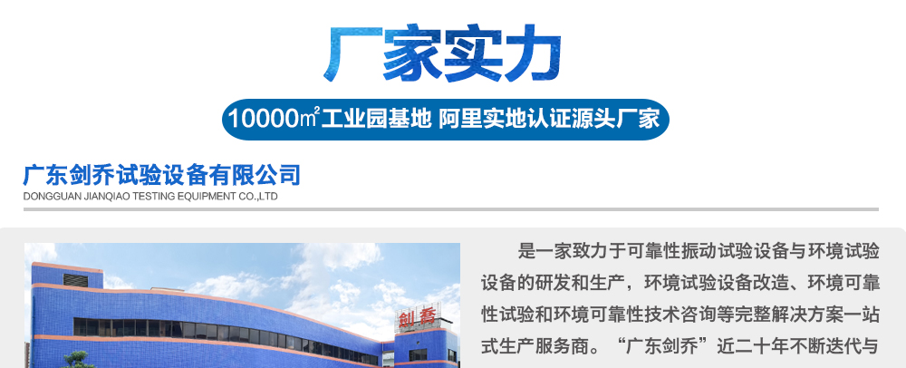 您好!歡迎光臨廣東劍喬試驗設備有限公司!主營產(chǎn)品:振動臺、振動試驗臺、高頻振動臺、振動試驗機、沖擊試驗臺、三綜合環(huán)境試驗箱、冷熱沖擊試驗箱等設備!
