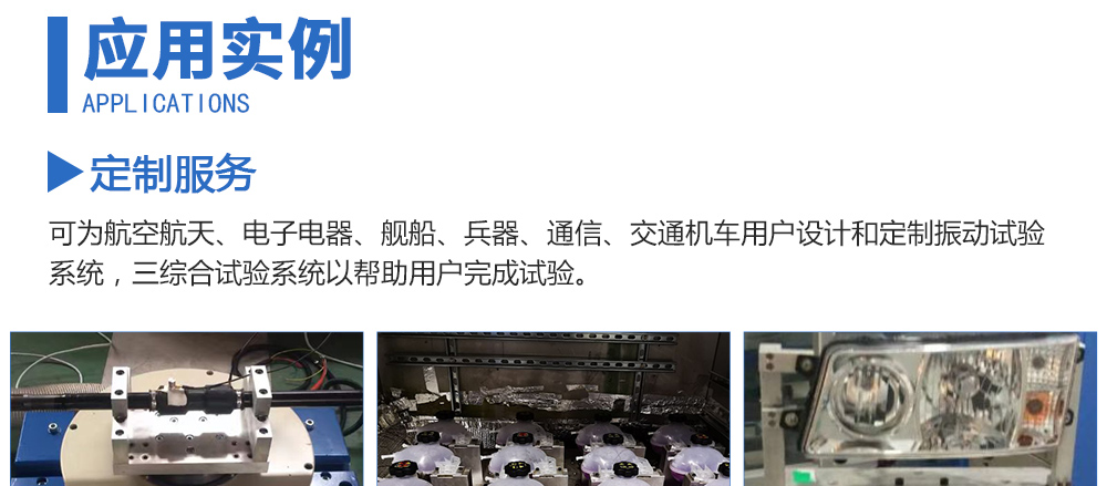 用途:可為航空航天、電子電器、艦船、兵器、通信、交通機車用戶設(shè)計和定制振動試驗系統(tǒng),三綜合試驗系統(tǒng)以幫助用戶完成試驗。