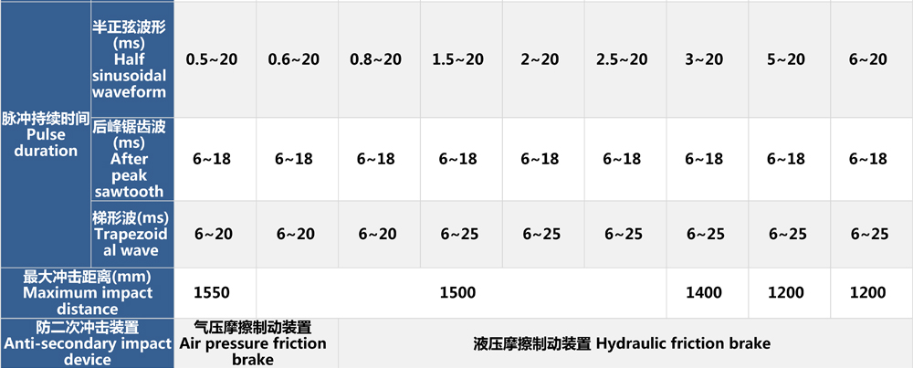 公司產(chǎn)品樣本中分別標(biāo)注出了各型號(hào)氣動(dòng)沖擊碰撞試驗(yàn)臺(tái)的空載和標(biāo)稱加載狀態(tài)下的速度變化量,用戶可根據(jù)自身試驗(yàn)指標(biāo)來(lái)選擇適合自身需求的沖擊臺(tái)。